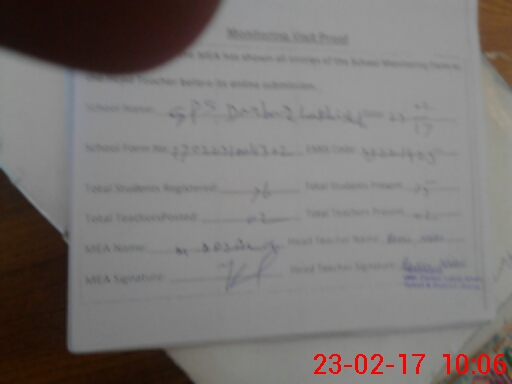 | Certified that this School was Inspected by the Undersigned MEA/DMO Today and the Information Stated Above is as Per Record. | |||||