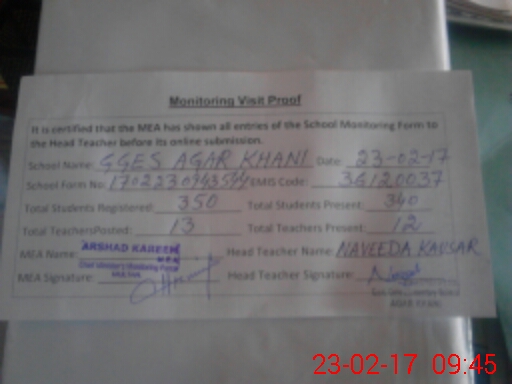 | EMIS Code: 36120037 | Name of School: GGES AGAR KHANI BASTI MAHRAM SHUJABAD | |||