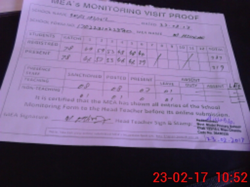 | Attendance Register | Head Teacher | MEA with School | Visit Proof |