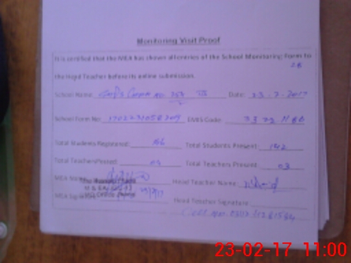 | Certified that this School was Inspected by the Undersigned MEA/DMO Today and the Information Stated Above is as Per Record. | |||||