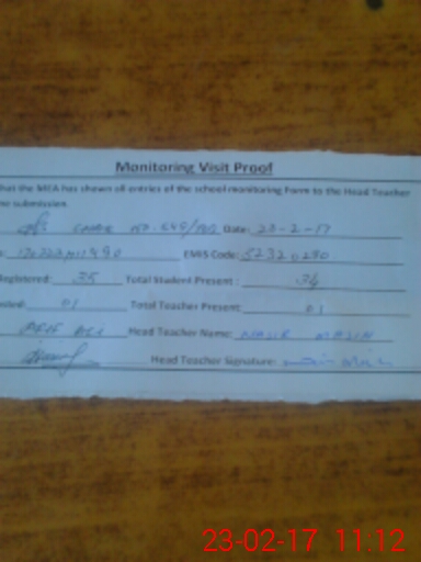 | Attendance Register | Head Teacher | MEA with School | Visit Proof |