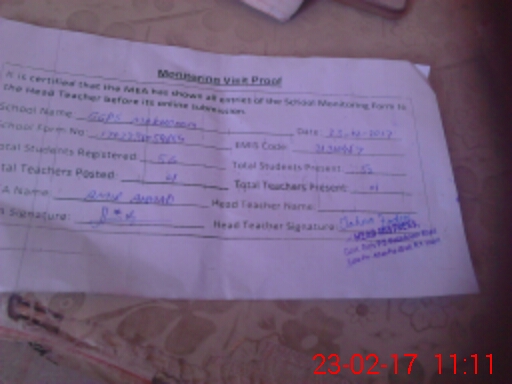 | Attendance Register | Head Teacher | MEA with School | Visit Proof |