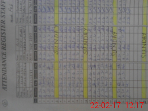 | CNIC | Full Name | Designation | R/C | Absence During Last Calender Month |