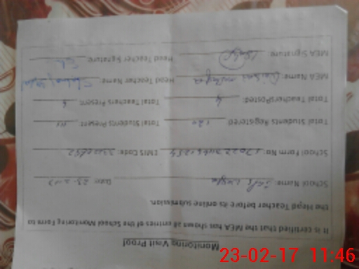 | Certified that this School was Inspected by the Undersigned MEA/DMO Today and the Information Stated Above is as Per Record. | |||||
