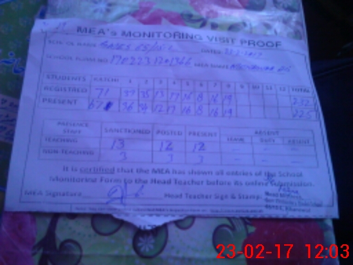 | Attendance Register | Head Teacher | MEA with School | Visit Proof |
