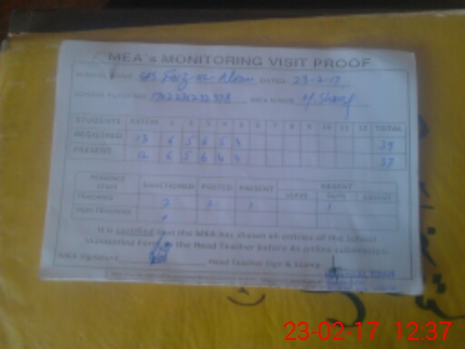 | Attendance Register | Head Teacher | MEA with School | Visit Proof |