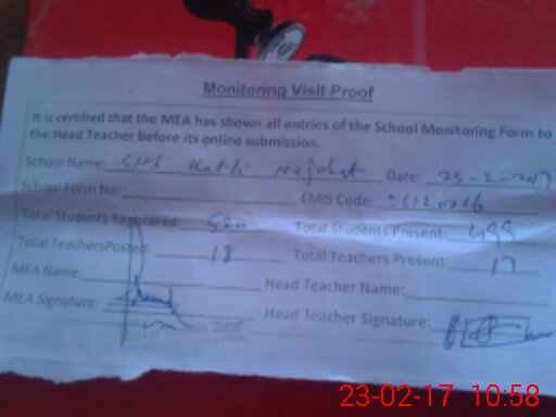 | Attendance Register | Head Teacher | MEA with School | Visit Proof |