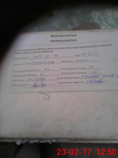 | Attendance Register | Head Teacher | MEA with School | Visit Proof |