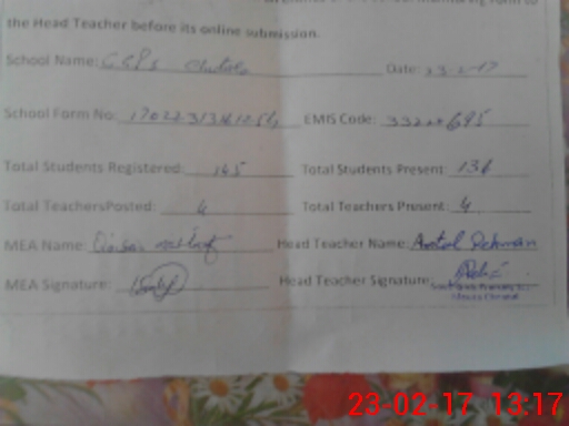 | EMIS Code: 33220695 | Name of School: GGPS CHUTALA | |||