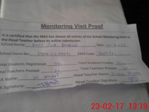 | EMIS Code: 31150321 | Name of School: GMHS JOYIA JAHANGIR | |||