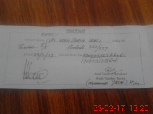 | EMIS Code: 39310374 | Name of School: GPS WAN SHERIN WALI | |||