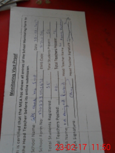 | Certified that this School was Inspected by the Undersigned MEA/DMO Today and the Information Stated Above is as Per Record. | |||||