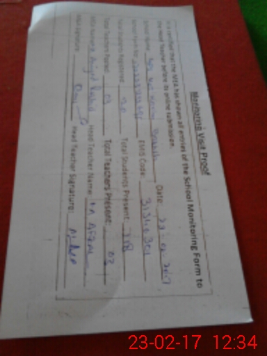 | Certified that this School was Inspected by the Undersigned MEA/DMO Today and the Information Stated Above is as Per Record. | |||||