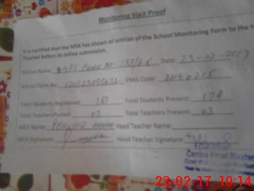 | EMIS Code: 31140215 | Name of School: GPS CHAK 133/6-R | |||