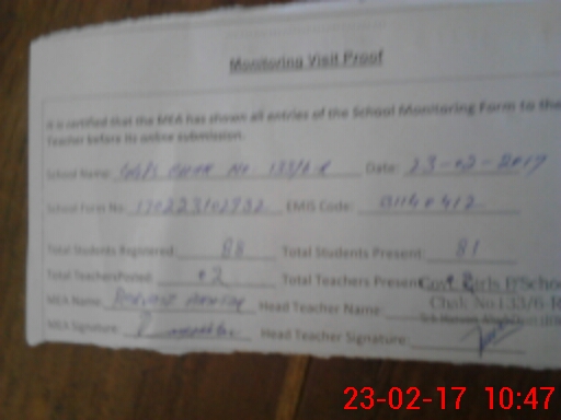 | Attendance Register | Head Teacher | MEA with School | Visit Proof |