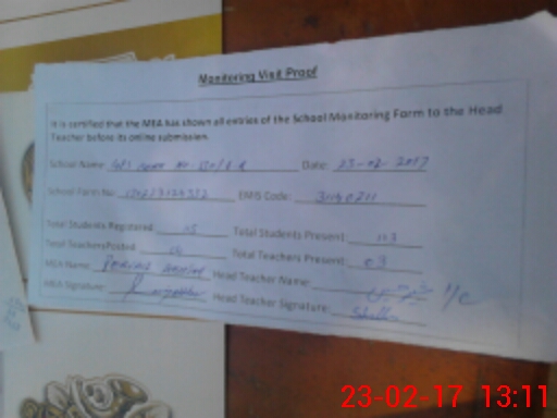 | Attendance Register | Head Teacher | MEA with School | Visit Proof |