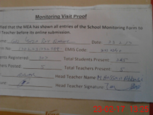 | Attendance Register | Head Teacher | MEA with School | Visit Proof |