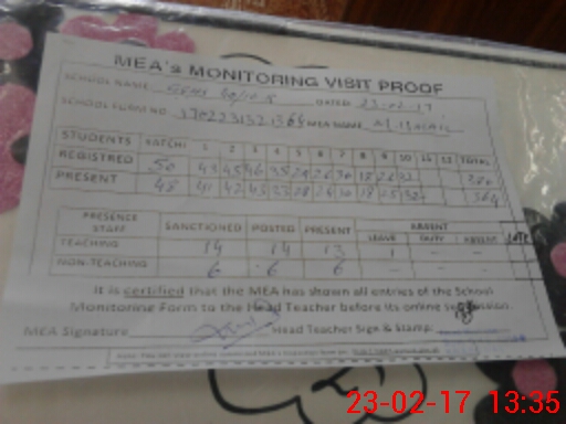 | Attendance Register | Head Teacher | MEA with School | Visit Proof |