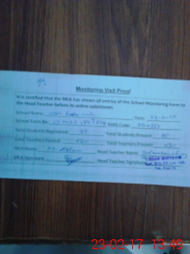 | Certified that this School was Inspected by the Undersigned MEA/DMO Today and the Information Stated Above is as Per Record. | |||||