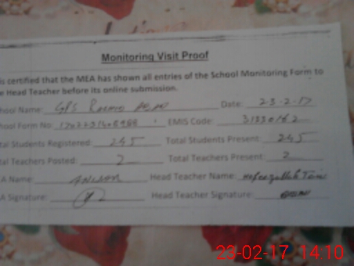 | Certified that this School was Inspected by the Undersigned MEA/DMO Today and the Information Stated Above is as Per Record. | |||||
