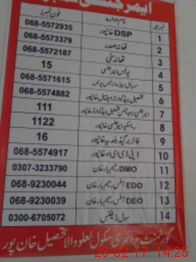 | District: RAHIMYAR KHAN | Tehsil: KHANPUR | Markaz: CHOWK NADIR SHAHEED-MALE | Level: Primary | |