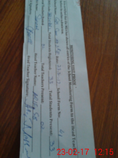 | Attendance Register | Head Teacher | MEA with School | Visit Proof |