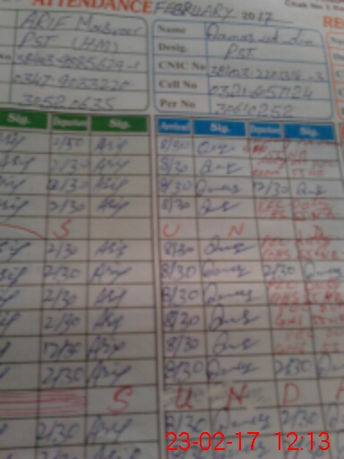 | CNIC | Full Name | Designation | R/C | Absence During Last Calender Month |