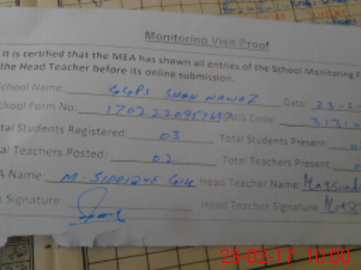 | Certified that this School was Inspected by the Undersigned MEA/DMO Today and the Information Stated Above is as Per Record. | |||||