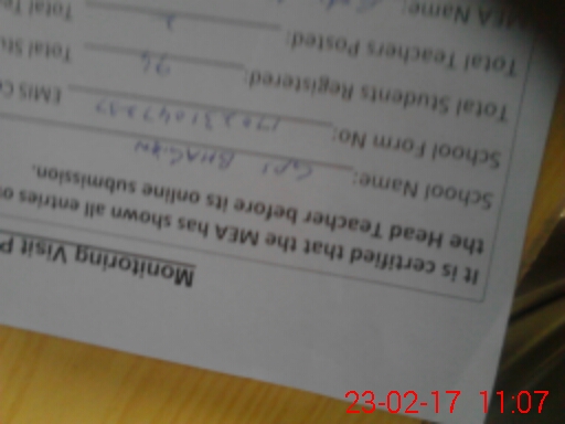 | Certified that this School was Inspected by the Undersigned MEA/DMO Today and the Information Stated Above is as Per Record. | |||||