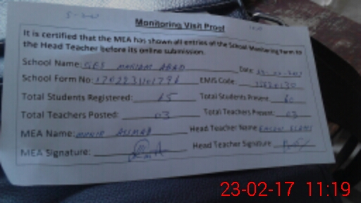 | Certified that this School was Inspected by the Undersigned MEA/DMO Today and the Information Stated Above is as Per Record. | |||||