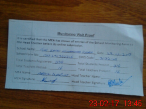 | Certified that this School was Inspected by the Undersigned MEA/DMO Today and the Information Stated Above is as Per Record. | |||||