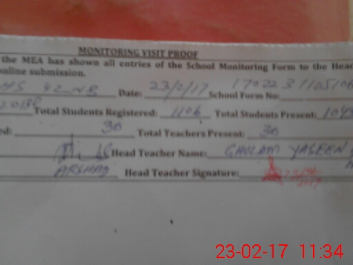 | Attendance Register | Head Teacher | MEA with School | Visit Proof |