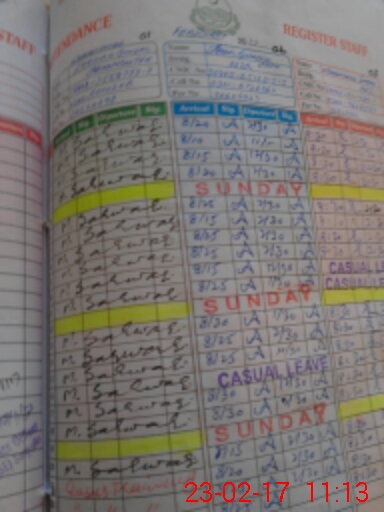 | CNIC | Full Name | Designation | R/C | Absence During Last Calender Month |