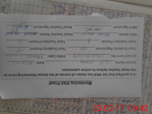 | Certified that this School was Inspected by the Undersigned MEA/DMO Today and the Information Stated Above is as Per Record. | |||||