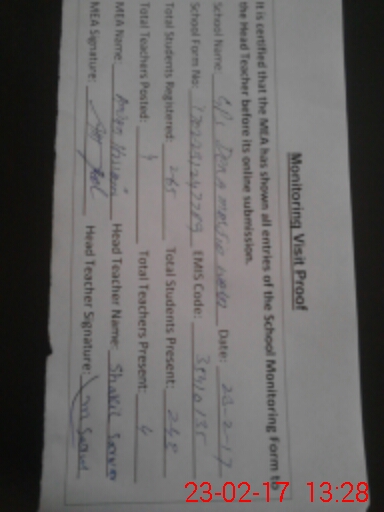 | Certified that this School was Inspected by the Undersigned MEA/DMO Today and the Information Stated Above is as Per Record. | |||||