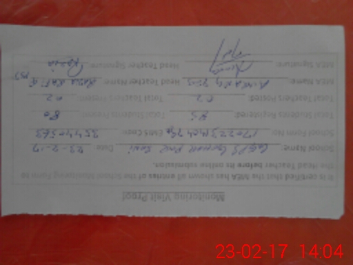 | Certified that this School was Inspected by the Undersigned MEA/DMO Today and the Information Stated Above is as Per Record. | |||||