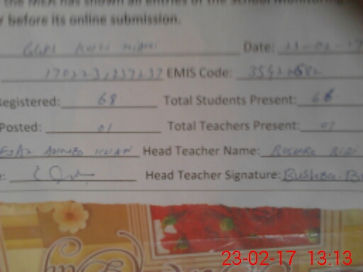 | Attendance Register | Head Teacher | MEA with School | Visit Proof |