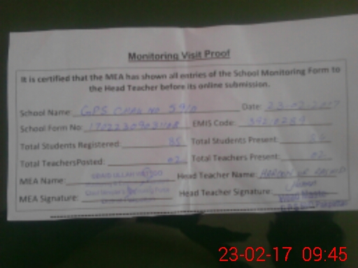 | EMIS Code: 39210289 | Name of School: GPS 59/D | |||