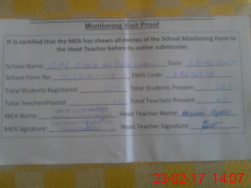 | EMIS Code: 39210575 | Name of School: GPS CHAK NO. 56/D (NEW) | |||