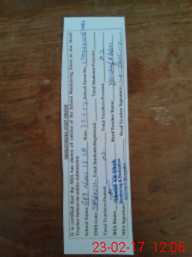 | Certified that this School was Inspected by the Undersigned MEA/DMO Today and the Information Stated Above is as Per Record. | |||||