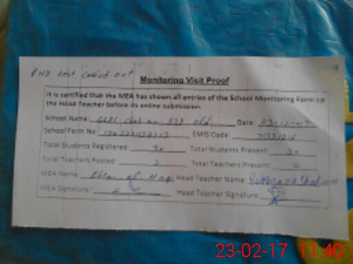 | Attendance Register | Head Teacher | MEA with School | Visit Proof |