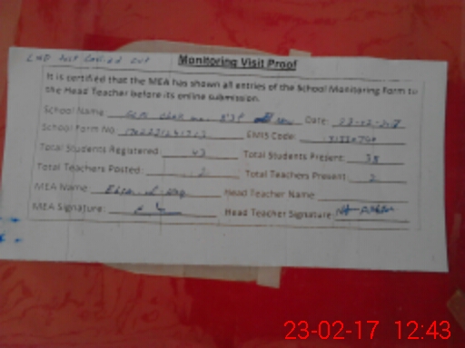 | Attendance Register | Head Teacher | MEA with School | Visit Proof |