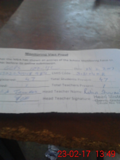 | Attendance Register | Head Teacher | MEA with School | Visit Proof |