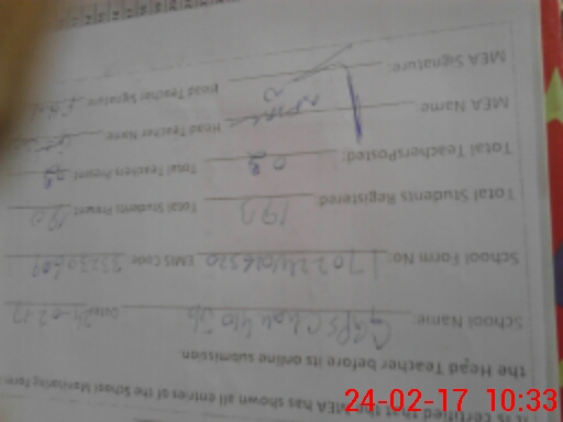 | Name: YA**** RA**** Designation: (School Headmaster's/Headmistress's) PST Phone/Cell Number: 03**** |