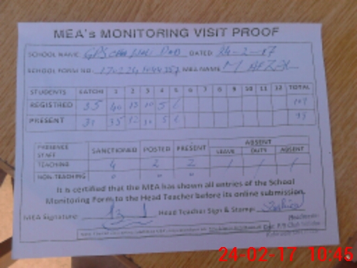 | Attendance Register | Head Teacher | MEA with School | Visit Proof |