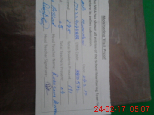 | Certified that this School was Inspected by the Undersigned MEA/DMO Today and the Information Stated Above is as Per Record. | |||||