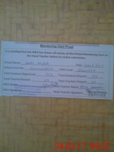 | EMIS Code: 39220347 | Name of School: GMPS CHAK NO. 20 KB | |||