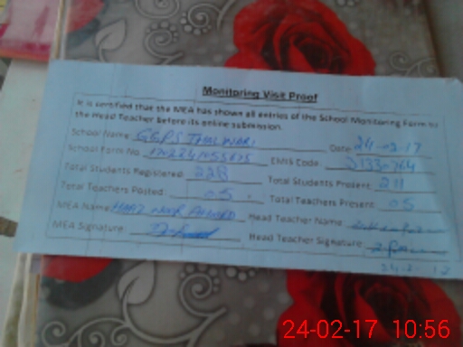 | Attendance Register | Head Teacher | MEA with School | Visit Proof |
