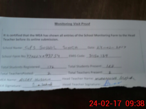 | Attendance Register | Head Teacher | MEA with School | Visit Proof |