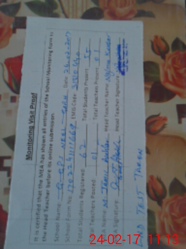 | Certified that this School was Inspected by the Undersigned MEA/DMO Today and the Information Stated Above is as Per Record. | |||||